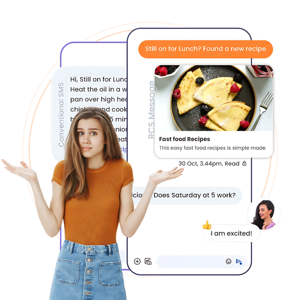 More Conversions & Sales: With RCS SMS, businesses can create interactive marketing campaigns that drive customer actions. Instead of clicking external links, users can browse product carousels, tap on call-to-action buttons.