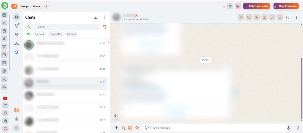 The Blur Privacy feature in CRM allows you to blur all contact names, messages, profile pictures, or images on your WhatsApp Web interface. This is especially useful when sharing your screen or WhatsApp Web with others, ensuring your private information remains hidden.